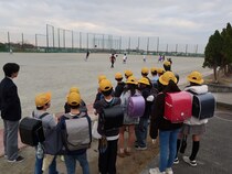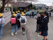 馴馬台小学校に付近に住む3年生と2年生約13名が、馴馬台小学校の校門で、朝のあいさつ運動を行いました。朝から寒い中、生徒も児童の皆さんも元気にあいさつを交わしていました。