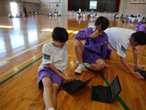 1年生では、校外学習を実施します。アクティビティー体験を通して、自分のよさを発揮しながら、仲間とのつながりを深め、社会と自分との関わりを理解して主体的に行動できる心を育てます。今日は、一人一人が個人活動目標を立て、タブレットに入力していました。