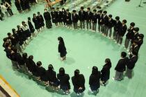 3校時、1年生の全クラスが集まり、合唱コンクールの動きを確認し、中間発表を行いました。皆、他のクラスの合唱を真剣に聴いていました。自分のクラスと比べていたのでしょうか。本番まであと9日。各クラスの取り組みが楽しみです。