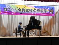 午後は、コミニュティスクール事業の一環として、地域のサークルとして活動している「二胡アンサンブル 紫音」をお招きして演奏していただきました。二胡の優雅な音色を楽しみました。即席で、吹奏楽の打楽器担当の生徒とのコラボもしました。吹奏楽部は、「Let‘s Swing!!」などを演奏し会場を盛り上げ、有志発表では、ピアノ独奏、独唱、ダンスなど、1年生から3年生まで11グループが出場し、午後の部を盛り上げてくれました。生徒にとって、楽しい1日だったと思います。