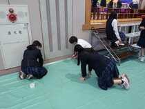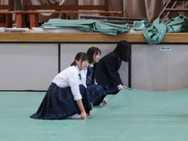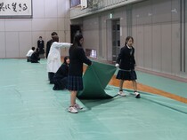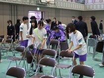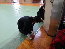 放課後、3年生の有志の皆さんが会場準備をしました。床のシート敷き、看板設置、椅子並べなど、短時間でテキパキと活動していました。さすが3年生!その様子を見て、下級生たちも手伝いをしてくれました。