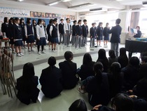 2年3組が3年生の合唱をみたいということで、交流の機会をつくりました。3年生は、合唱がとても好きで上手です。今回、2年3組の皆さんは、3年2組の合唱を聴き、刺激になったようです。2年3組も3年2組の生徒に聴いてもらいました。3年2組の生徒は温かい拍手を送っていました。