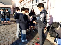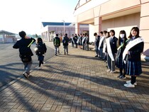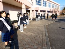 ボランティア委員会の生徒たちが、歳末助け合い募金運動を行っています。早朝、登校時一人一人に声をかけています。ご苦労様。