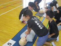 龍流連携事業の一環として、5年生で救命救急講座を実施しました。流通経済大の大学生の皆さんが講師を務め、グループに分かれてAEDの使い方や心肺蘇生の方法、倒れている人を見かけたときの対処の仕方などを学習しました。はじめは戸惑っていたようですが、大学生の皆さんのアドバイスもあり、一人一人が体験を行うことができました。最後には、流経大の稲垣先生からクイズが出され、子供たちが実際に倒れている人を見かけたときには、近くの大人に知らせるということを確認しました。