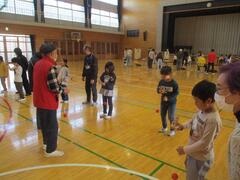 馴柴まちづくり協議会の皆さんや保護者の方を交えて、2年生の昔遊び交流会が行われました。2年生は、けん玉と輪投げを楽しみ、上手にけん玉がお皿にのったり、投げた輪がきれいに的の棒に入ったりしたときには、大はしゃぎで喜んでいました。どちらもなかなかコツがつかめに子には長寿会の方が丁寧に教えてくださり、どんどん上達していました。