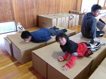 屋内では、段ボールベッドや避難所用のテントの体験、防災に関する○×クイズ等を行いました。