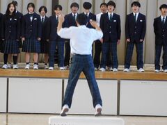 生徒会役員が司会を務め、「ジャベボール」を投げるようすを見せていただいたり、質問に答えていただいたりするなど、和やかな雰囲気で行われました。