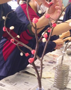 本日、ならせ餅作りが行われました。3年生が餅つき、2年生が枝に餅をつける作業を通して、伝統行事を体験することができました。