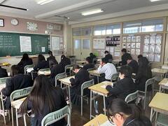 学力検査を明日に控え、生徒たちは緊張した様子で、主任の話を聞いていました。