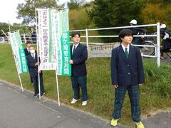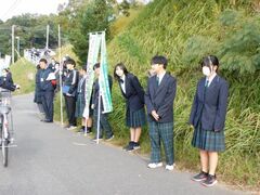 生徒会だけでなく、龍響フェスティバル実行委員もあいさつ運動に参加しました。