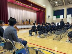 本日は令和6年度の修了式が行われました。真剣な様子で、代表生徒の作文発表や学校長の話を聞く生徒の姿が見られました。