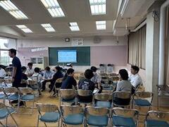 生徒たちはタブレット端末を活用しながら課題に主体的に取り組み、互いに考えを共有し合う姿が見られました。