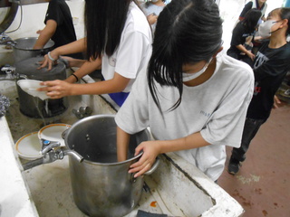 グループごとに、調理器具の準備や火おこし、食材の下ごしらえにカレーの調理等、ほとんどの工程を自分たちの力でやりとげました。