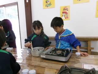 ジャムづくりでは、二人一組になり、「おいしくなあれ」の気持ちをいっぱい込めながら仲良く作りました。