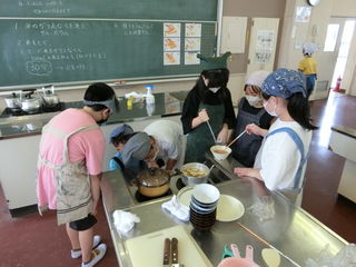 ご飯とお味噌汁を調理しましたが、グループで相談しながら、ご飯の火加減を見たり、お味噌汁の食材を切ったりしていました。
