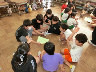 2、5年生グループの話合いの様子。
