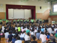 今日は、龍ケ崎中学校の吹奏楽部の皆さんが龍ケ崎小学校に来て出前演奏会を開いてくれました。小学生がよく知っている曲を選んでくれたり、指揮者として演奏に参加させてくれたりと、工夫あるプログラムで子供たちを楽しませてくれました。アンコールの演奏では、小学生も曲に合わせて自然に歌声が上がるなど、会は大いに盛り上がりました。龍ケ崎中学校吹奏楽部の皆さん、楽しい演奏会をありがとうございました。なお、今日のこの演奏会は、龍ケ崎市が進める「子どもが主役!魅力ある学校づくり推進事業」を活用して行われたものです。