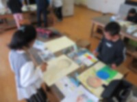 秋本番を迎え、各学年の図工の授業では、子供たちが絵画の制作に取り組んでいます。5年生の課題は「静物画」です。モチーフは自分のランドセル。学習者用端末を使って撮影した写真なども参考しながら、ランドセルの形や質感をとらえ、陰影や光の表現に注意しながら作品を仕上げていきます。今日は、多くの子供たちが、鉛筆による下書きを進めていましたが、少しづつ彩色にうつる子供たちも出てきました。愛着のあるランドセルがどんな水彩画となって描かれるのか。できあがりが楽しみですね。