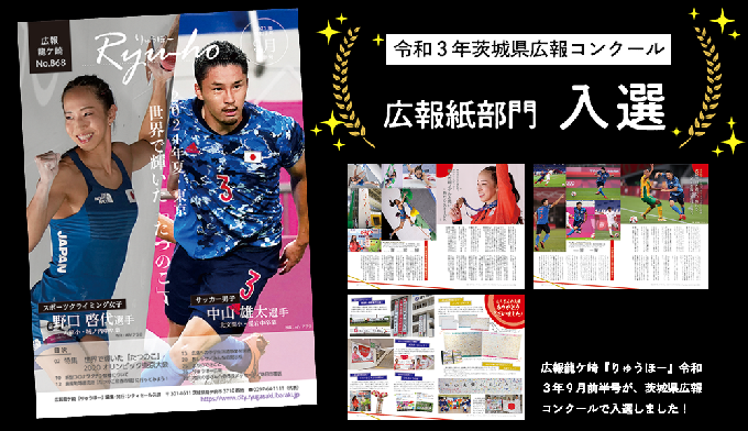 茨城県内の市町村が発行する広報紙や広報企画などのコンクール「令和3年茨城県広報コンクール」で、『りゅうほー』9月前半号が広報紙部門で入選しました!