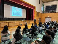 オンラインによる集会を行いました。年末に市交通安全推進リーダーに任命された5年生2名から「ヘルメットの着用」と「1列で登下校する」ことの声かけがありました。交通事故ゼロで1年を過ごしていきたいと思います。
