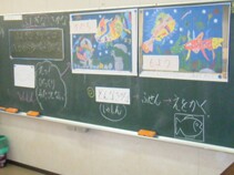 1年生の図画工作で絵画制作を始めます。魚の形や模様の特徴を捉えながら絵で表現していきます。今日は、図書を利用してどんな魚がいるか、どんな特徴があるのか、どのようにして絵を描こうかということを考えていきました。これからの制作が楽しみです。