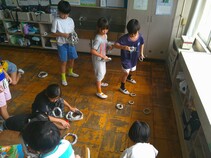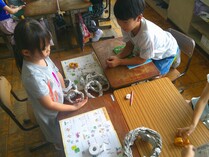 2年生の生活科ではおもちゃ作りに取り組んでいます。今日は輪投げづくりに挑戦しました。グループでどんな輪や棒をどのように作ればいいかを相談しながら協力することができました。相談したことを形にしながら多くのおもちゃを作ります。最後は1年生を招待する予定です。