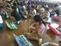 1年生の音楽では、鍵盤ハーモニカの学習が始まります。この日は、講師をお招きし、講習会を開催しました。鍵盤ハーモニカの構造や音の出し方などを学習しました。実際に音が出ると楽しそうな表情を見せていました。これからたくさんの演奏ができるといいですね。