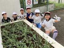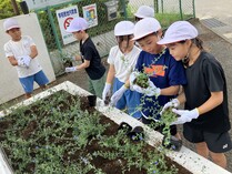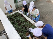 緑の募金活動から八原小に還元された緑化資材(花の苗)を植えました。花壇の手入れ、土づくり、アメリカンブルーの苗植えを3年生の協力により行いました。秋の季節でも大きく成長し、きれいな花を咲くことを願っています。