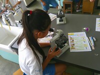 「植物の実や種子のでき方」の学習の中で、顕微鏡の使い方を学んでいます。接眼レンズや対物レンズなどの名称を知り、実体顕微鏡の扱いを理解しました。今回はアサガオの花粉の様子を観察しました。顕微鏡の操作にも慣れながら、多くの観察に活かしてほしいです。