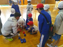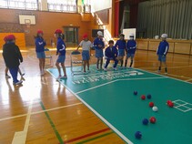 3年生が総合的な学習の時間でボッチャ体験を行いました。流通経済大学のみなさんから、ボッチャの特徴やルール、試合の進め方などについて教えていただきました。健常者としてだけでなく、いすを使って車いすの選手と同じ目線でプレーする体験もすることができました。ボールが目標の近くに投げられたときの喜びを感じていました。障害のある方でも楽しめることを知りました。流通経済大学のみなさん、ありがとうございました。