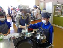 5年生が親子ふれあい活動で、白玉作りに挑戦しました。白玉の生地をこねる所から取り組みました。最初は緊張した様子も見られましたが、形が見えてくると楽しそうな表情になりました。トッピングのあんことフルーツを乗せる頃には、食べるのが待ち遠しい気持ちが伝わってくるようでした。完成した白玉のおいしさに、みんなの幸せそうな顔が見られました。作っている時の真剣な表情や食事する際のうれしそうな表情がみることができ、充実した時間を過ごすことができました。