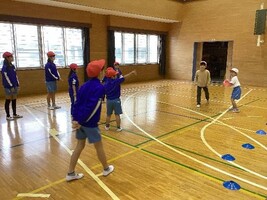 6年生が1年生にドッジボールを教える会を開きました。6年生は1年生に伝わるように優しい言葉かけをしながら、教えていました。実際にゲーム形式で行った際も、1年生がやりやすいように各々が工夫して取り組むことができました。1年生もとても楽しそうに取り組んでいて、6年生にとっても有意義な時間となりました。これから、休み時間などにも一緒に遊んでくれることを期待しています。